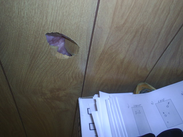 also some pics of where balls have flown through the paneling when i get frustrated about nothing but bad luck all the time.