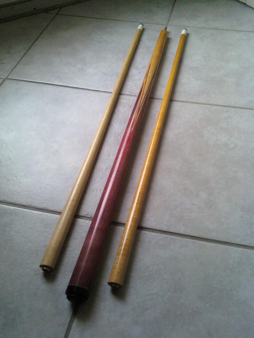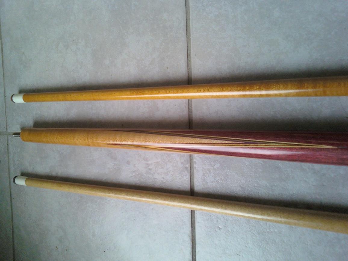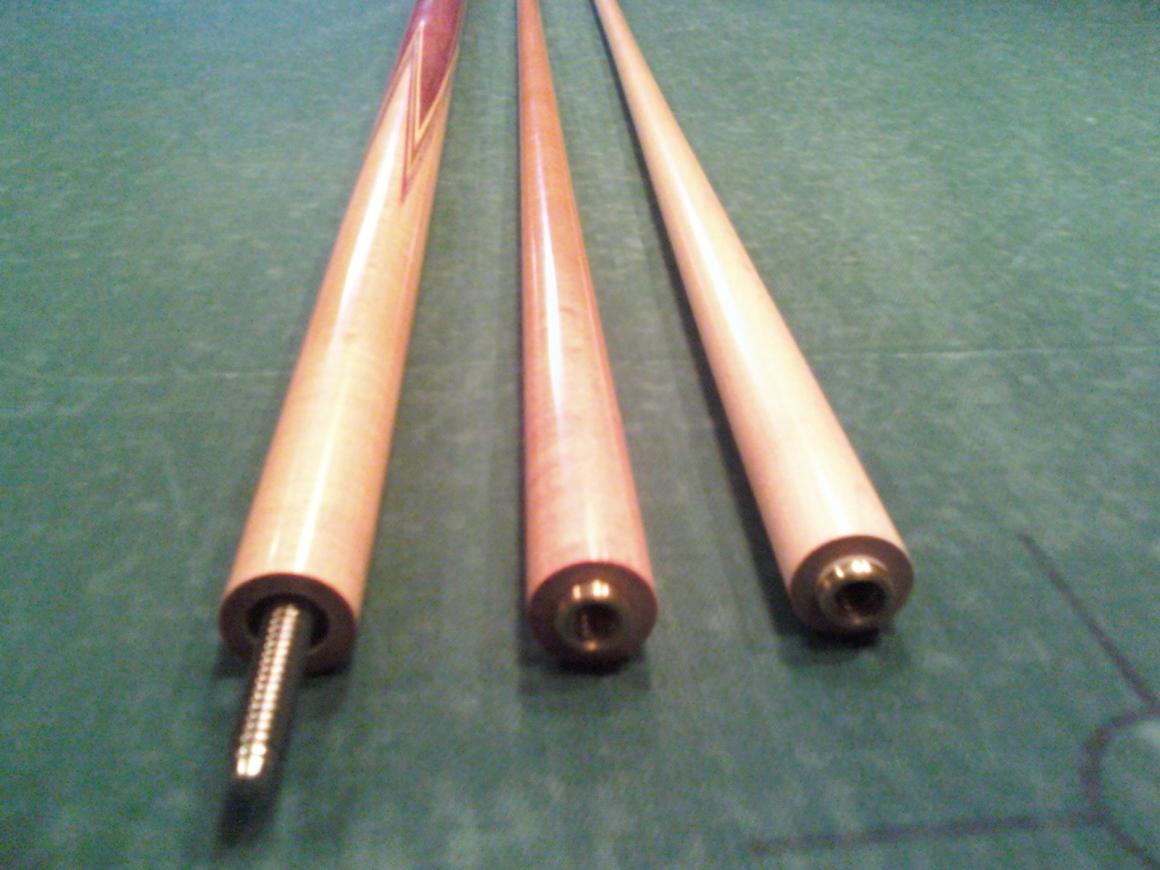 Here's the story...I previously had a true Scruggs sneaky that hit as solid as anything I've ever had - it was great, but I like veneers. I love the simple look of Titlist cues just the way they are, and I had a spare Scruggs sneaky shaft, so I had a thought (and ironically a Titlist on hand). I'd have the titlist converted, keeping the stock shaft, and have the Scruggs shaft matched for a second shaft with the cue. What can I say, it came out beautifully thanks to some phenomenal work by Chuck Starkey. The cue hits like a dream with both shafts :wink: