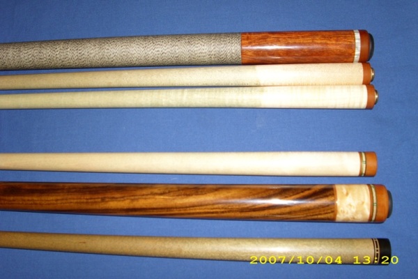 The top cue is the cue i play with, it's a Scot Sherbine w/ two shafts