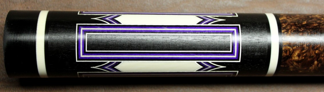Here is cue close to Jamies with a few more inlays added and in my favorite colors, purple and white with silver everwhere.
