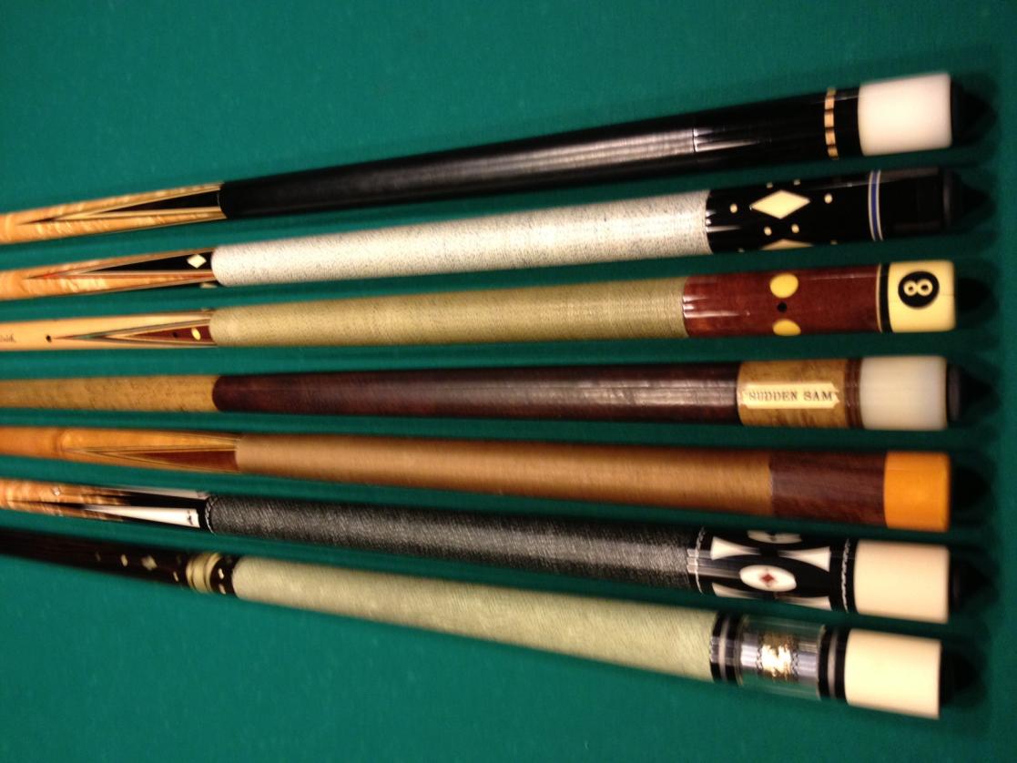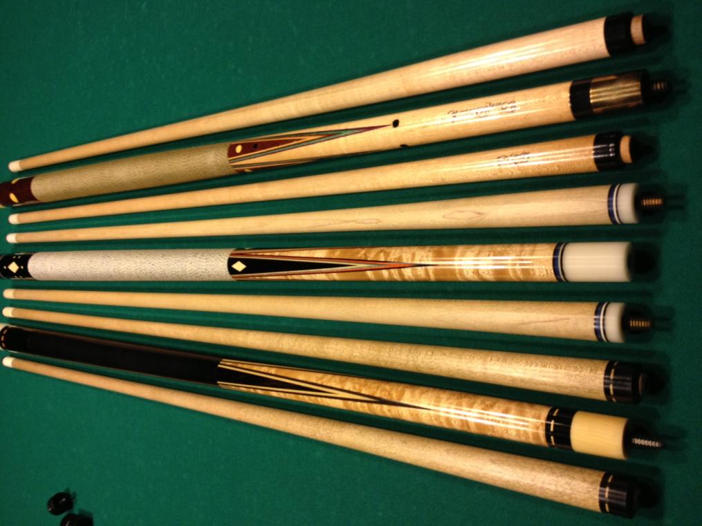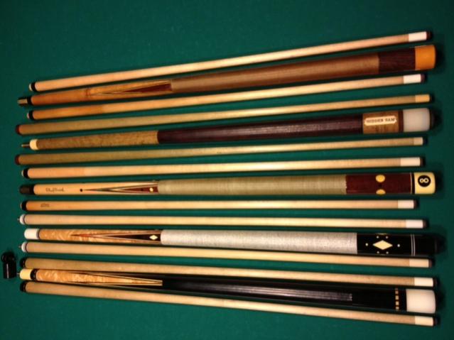 This is my collection of vintage Hall of Famers. Gus Szamboti piloted ivory jointed classic, Burton Spain, a unique Herman Rambow, Ivory jointed Harvey Martin 1969, very early Frank Paradise and a loaded Joss West ivory gambler( which doesn't really fit the genre but I couldn't resist). hope you like them, thanks for looking. I'd be happy to show close ups of any of the individual cues.