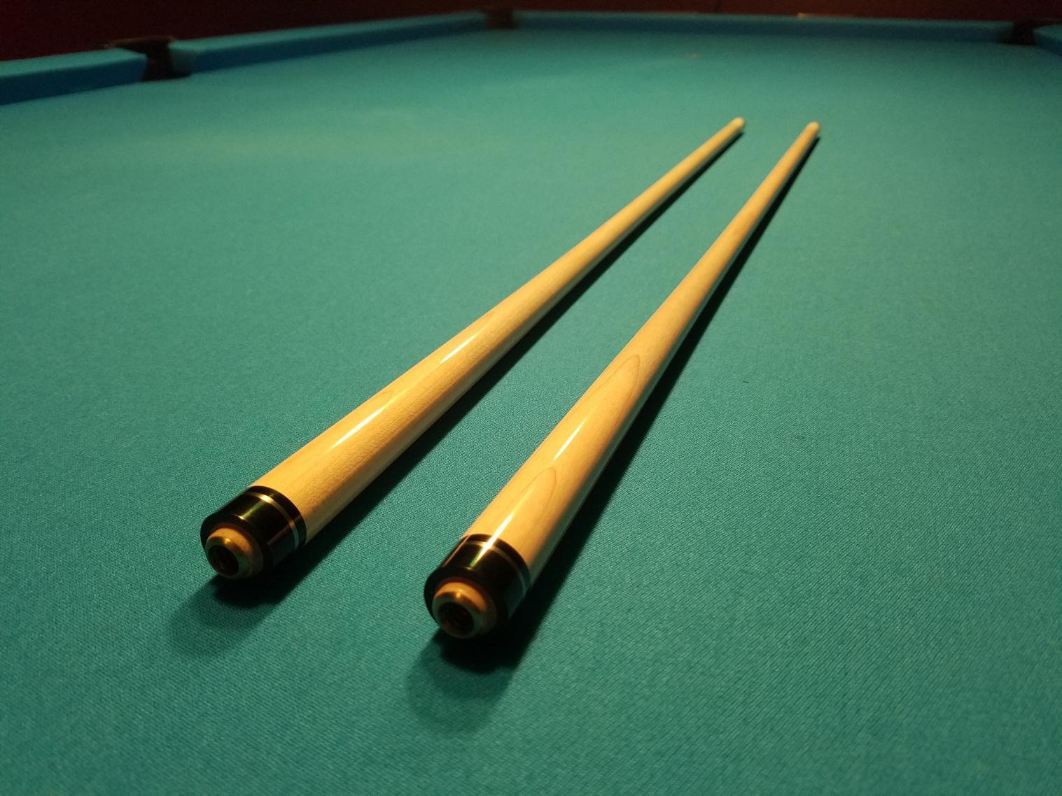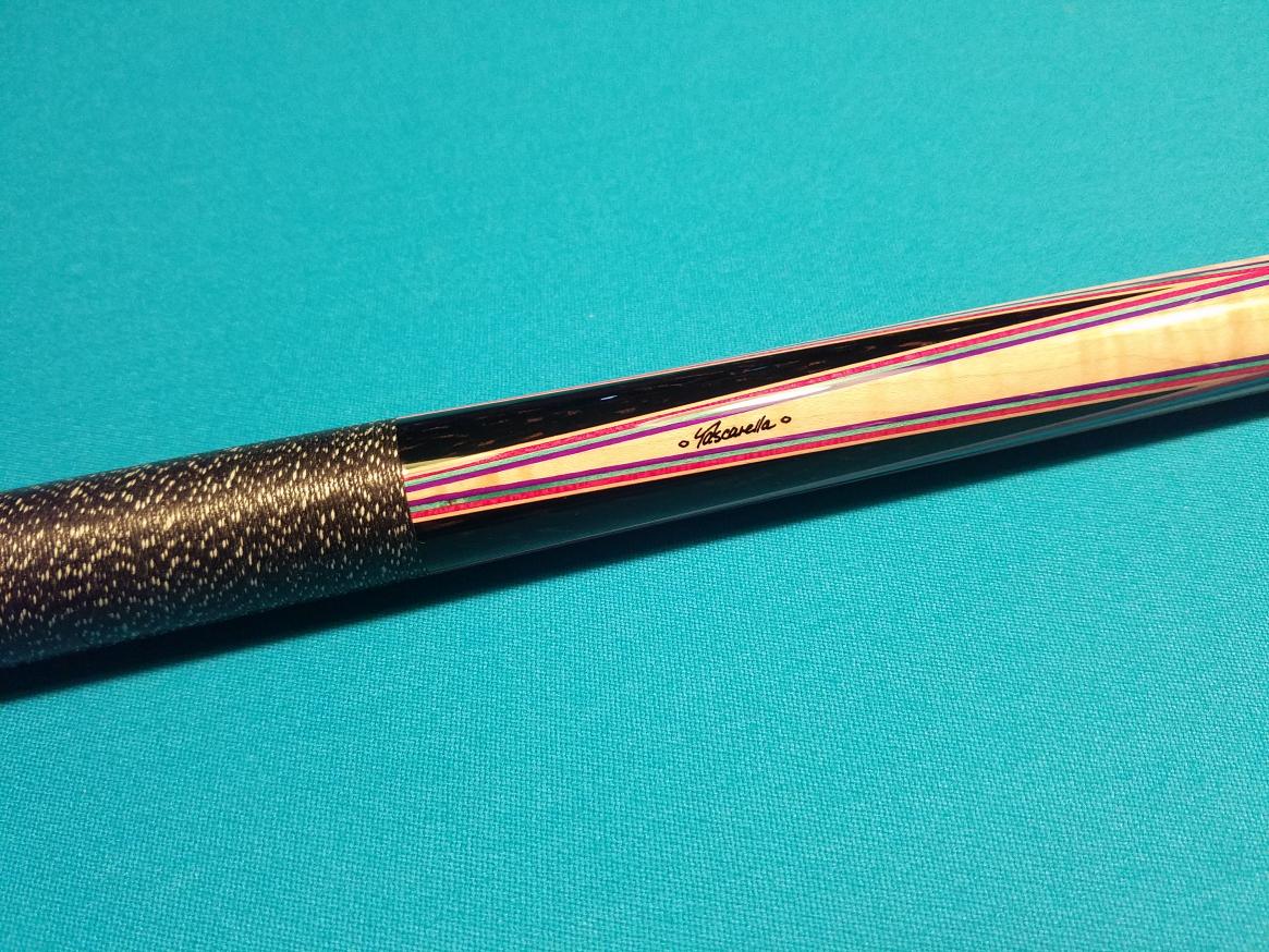 Slightly used Tascarella for sale with ebony points and ebony butt. Very slight bluing in the shafts. No flaws, dings, dents, scratches, etc. whatsoever. Cue rolls straight, together, and apart. One of the best playing cues I have ever had. Very beautiful cue. No having to be on a waiting list.