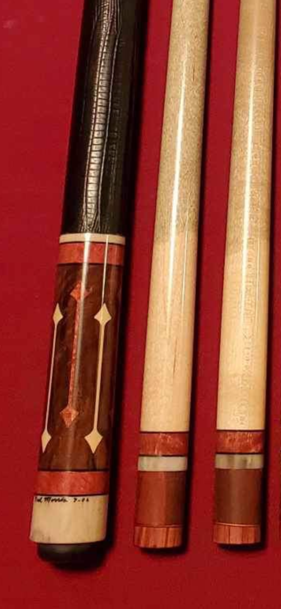 Beautuful Ned Morris eight point cue with three shafts and custom joint protectors. Dated 2006, straight and solid. Shafts 13 mm, cue weights 19 ounces. $1800 PayPal f/f, Will ship North America.