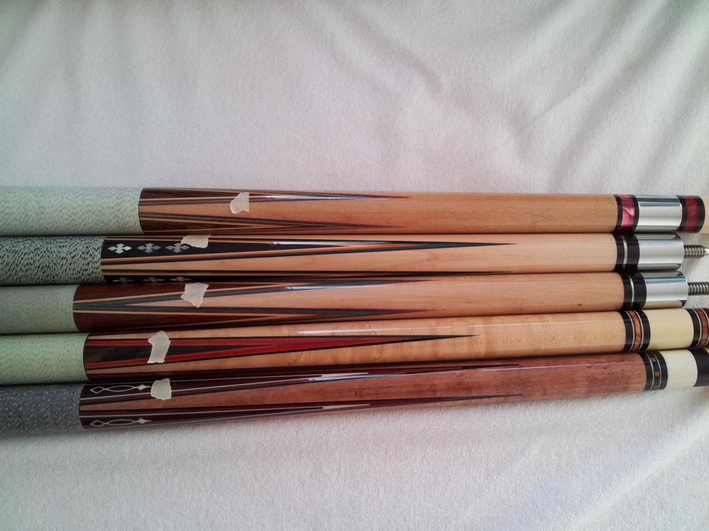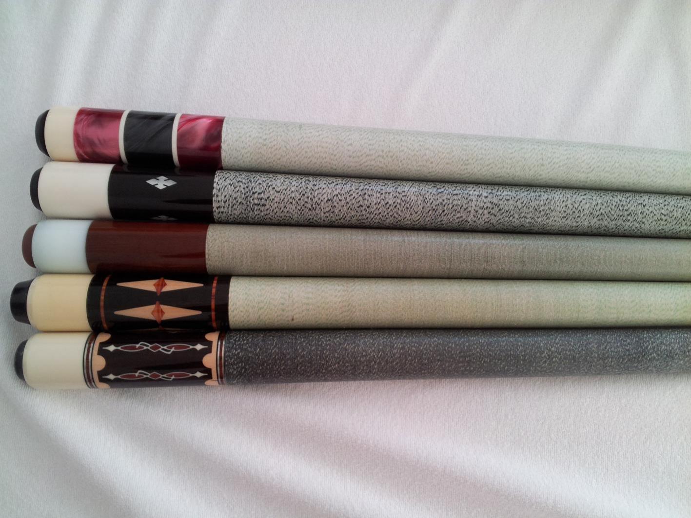 Mine is the second from the top in this photo. The little pieces of tape were from measuring the balance points of the cues.