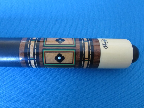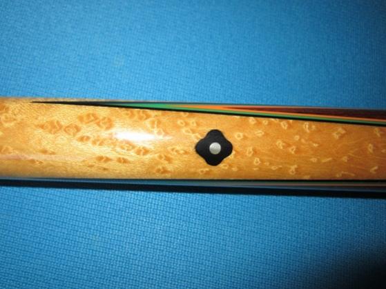 I just bought this on ebay, it is similar to the stick that started this thread but does not have a "super joint". It seems very close to the stick I had in '67 but I think my original stick had a white joint. I have not found this stick in the blue book. The logo looks too new to be an early stick to me but I don't think the forearm is BEM which I assume would make it an early cue.