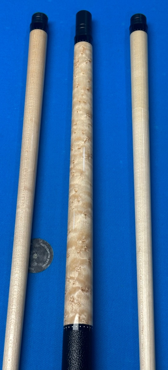 New Barnhart cue with leather wrap and 2 shafts and joint protectors .Also has an 8" extension .Cue has Radial pin ,butt weighs 15.3 oz ,shafts are 3.7 and 3.8 and 13mm .$1650 ,message if interested