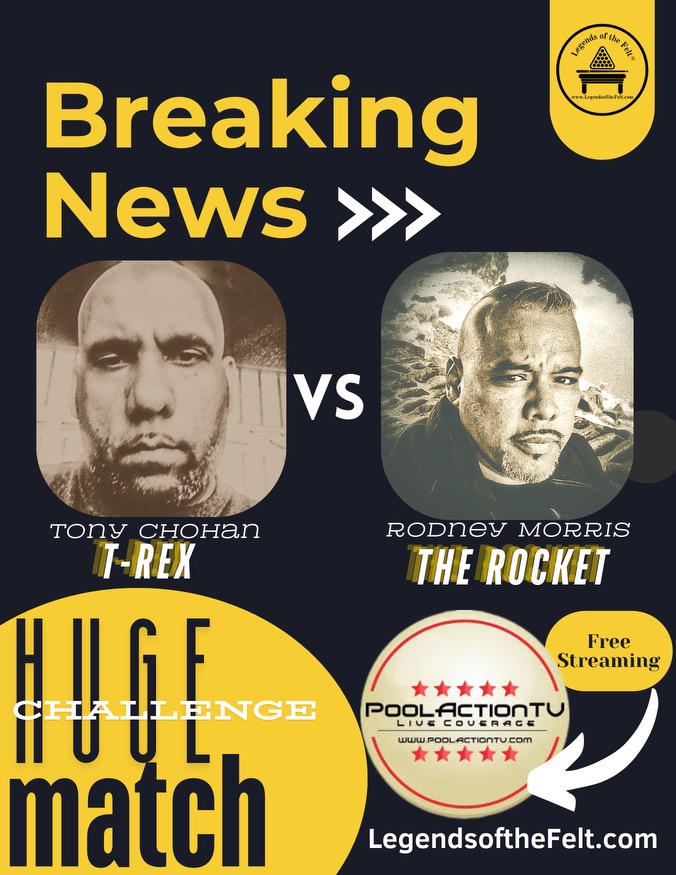 Sunday the 20th will involve money matches between Rodney & Tony. There may also be a guest appearance & this will be streamed by actionpooltv.com.