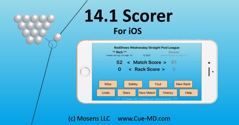 A link to the app is available from the Downloads page of www.cue-md.com, or search the Apple App Store for '14.1 Scorer'.