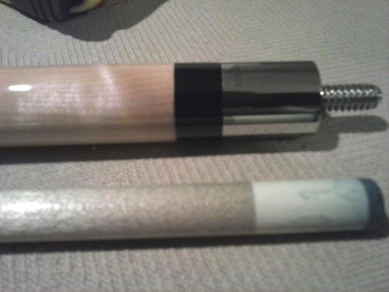 Hi. I am selling a brand new Joss J5352 butt with a custom shaft made by Cameron Matthys Custom Cues in Kansas City. The shaft is one of Cam's "Camshafts" - it has a great solid hit to it and is straight. The shaft is marked "Camshaft 08" - made in 2008 and has stayed straight over the years. The shaft is smaller than I prefer is the only reason I am selling it. If it was a 12.75-13mm like I prefer, I would be holding onto it for sure. I don't have a ruler that measures mm, but I did measure in inches, and the tip looks to be right at 29/32", which would be 11.5-11.6 mm. I am unsure of what brand tip is on this shaft. I am thinking that it is a triangle but that is just a guess. The shaft has 2 tiny dings that I can feel on close inspection. I'm sure they could be pulled out if they bothered you, but they are hardly noticeable. $225 OBO shipped in the 48 contiguous United States. Here is a link to Cameron's webpage: http://www.cmccues.com/cues.html