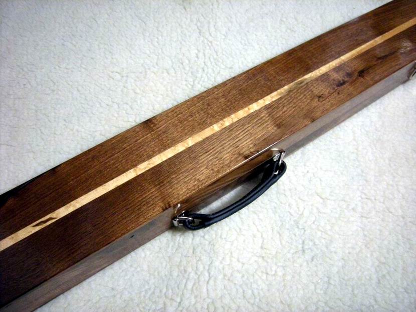 I STILL HAVE FOR SALE THIS 2 BUTT 4 SHAFT HAND CRAFTED WOOD CUE CASE. IT FEATURES BIRDS EYE AND WALNUT WOOD.BRASS PLATED HARDWARE,LOCKABLE LATCHS,AND A BLACK CARRY HANDLE.WILL HOLD BUTTS 31 1/4 LONG ,AND HAS AREA FOR SOME SMALL ITEMS TO STORE.