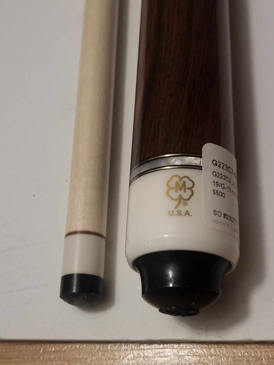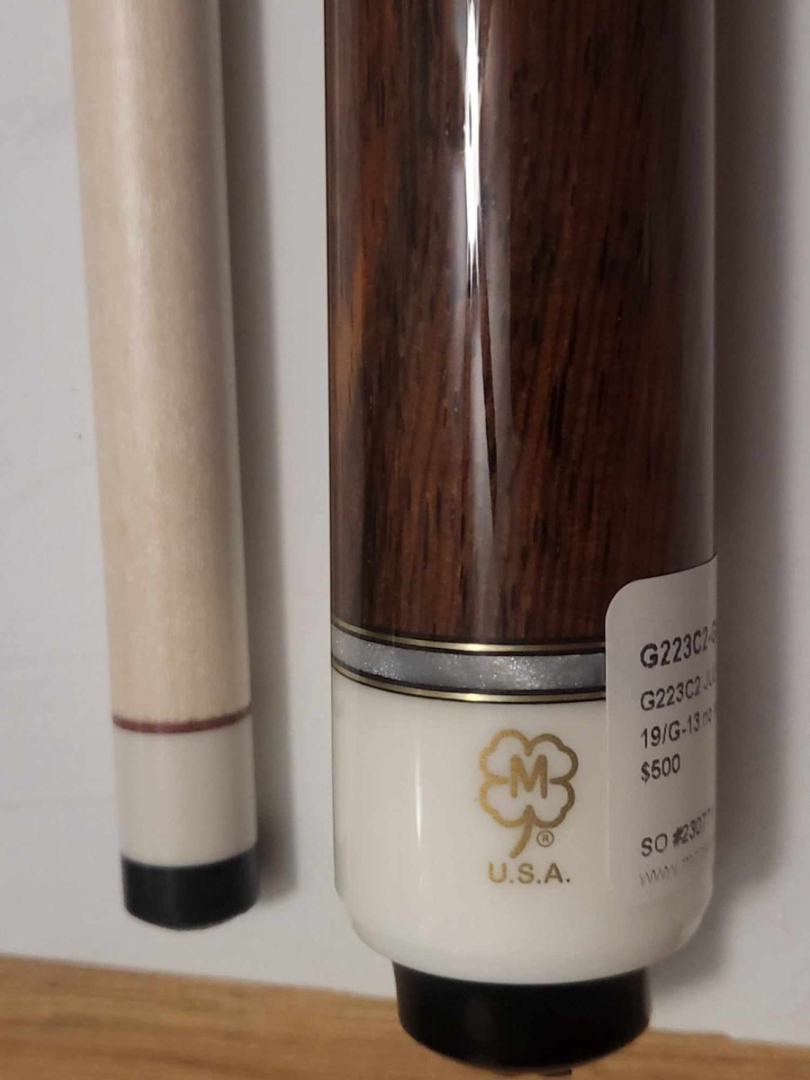 Slightly used McDermott G223C2 standard 29" and 19.6oz, this cue was the July Cue of the Month, has G-Core shaft with a Navigator tip, customer used for a couple months and traded it in on another stick, the shaft is a brand new G-Core the butt has a fe small blemishes but in excellent condition