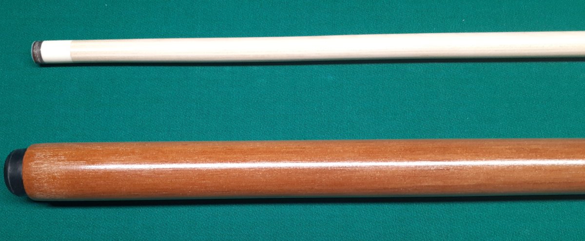 New Sneaky for sale. Cue is signed. Butt 14.84 Oz. Shaft 3.58 Oz. With 13 mm Juma ferrule with Triangle tip. 3/8-10 joint pin. Shaft is high quality laminated wood pro taper. 58 inch cue. Tung Oil finish. As close to looking like a house cue as you can get. For the player that doesn't like to be noticed. Nice hitting cue. Has that nice soft "ping" sound cue makers strive for. No nonsense, just gets the job done. Cue is straight apart and together. Asking LOWER price$SOLD OBO Shipped CONUS.