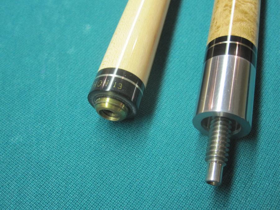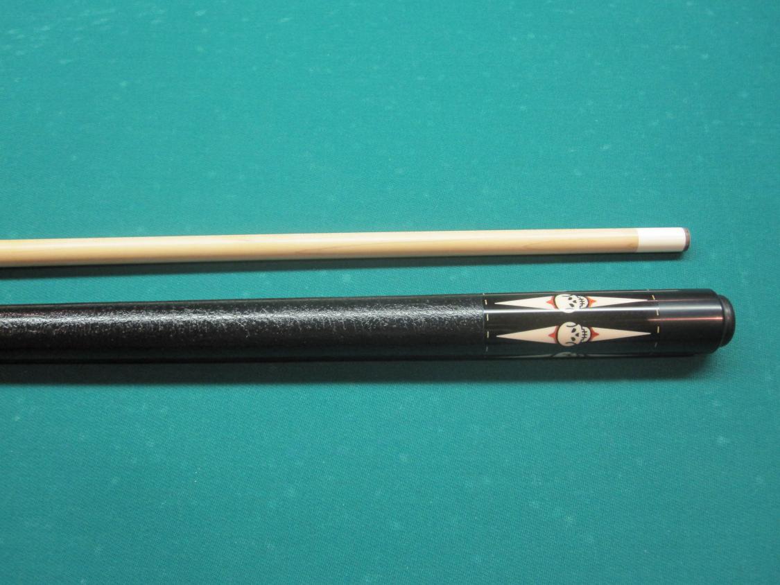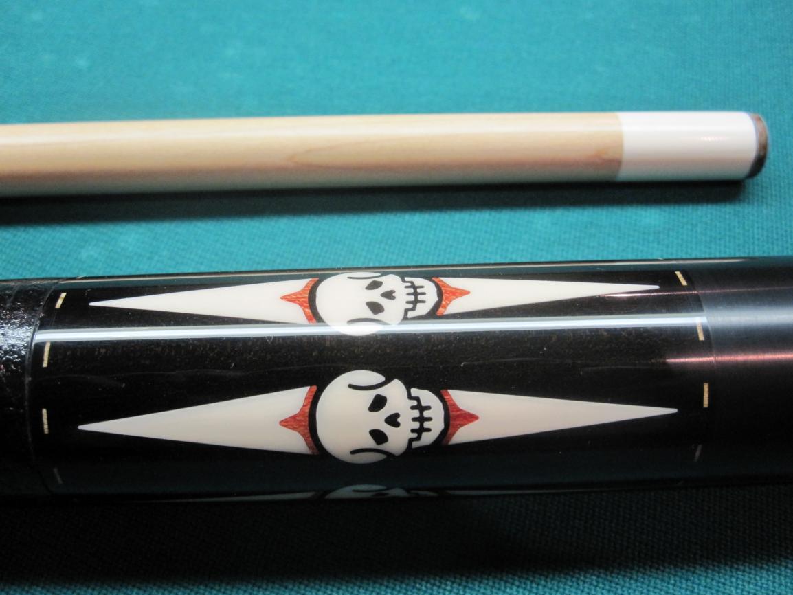 real nice Schon Skull cue with black textured leather wrap and 1 13mm Schon 13 shaft 4.1 oz, butt 15.2rolls straight together and apart no dings or dents ....SOLD in 5 minutes