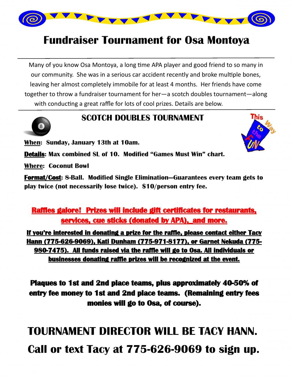 Northern Nevada Fundraiser Tourney for Osa Montoya - Jan. 13th - APA 8-Ball