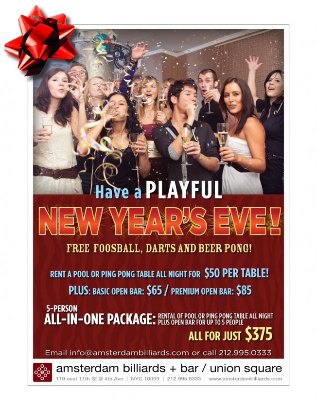 New York City is only 24 hours away from the biggest party day of the year… New Year’s Eve! To ring in the New Year with fun, games, and great drink specials, the hot spot in NYC has got to be Amsterdam Billiards!