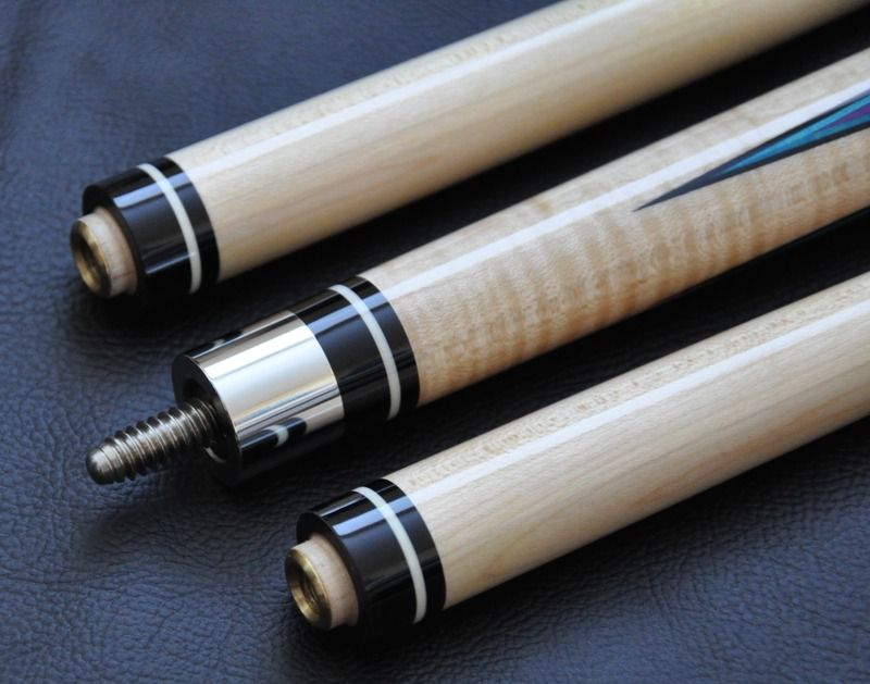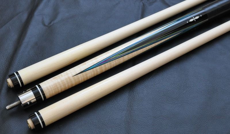 This cue is just stunning and classic with a twist of modern. The veneers are some of the tightest and brightest that I have ever seen. Did I mention his inlay work? The ivory inlay work is sharp, clean, and also among some of the best Ive seen. All white on the cue is ivory (except for ferrules).