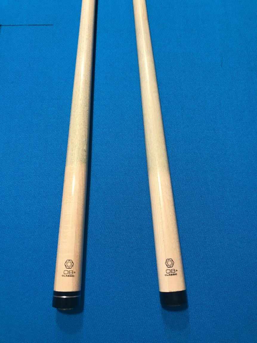 I have two OB Classic + shafts for sale. Both are 5/16 x 14 thread, 29" long. One with a solid black collar, the other with the silver ring. The plain collar shaft has an Ultraskin Pro tip. The silver ring collared one has the original Everest. Both have a slight taper roll, but the tips never move when rolled separate or on the butt. SOLD.