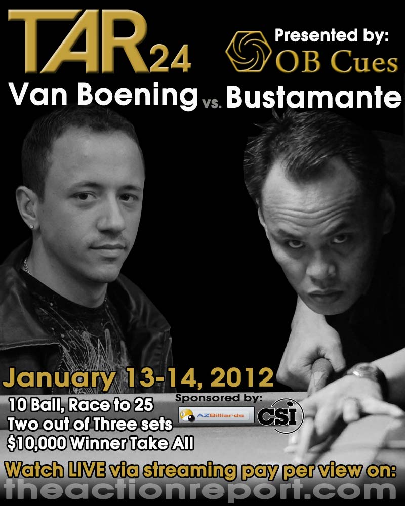 Tune into www.theactionreport.com on Friday January 13th for the kick off TAR 24: Bustamante vs Van Boening presented by OB Cues.