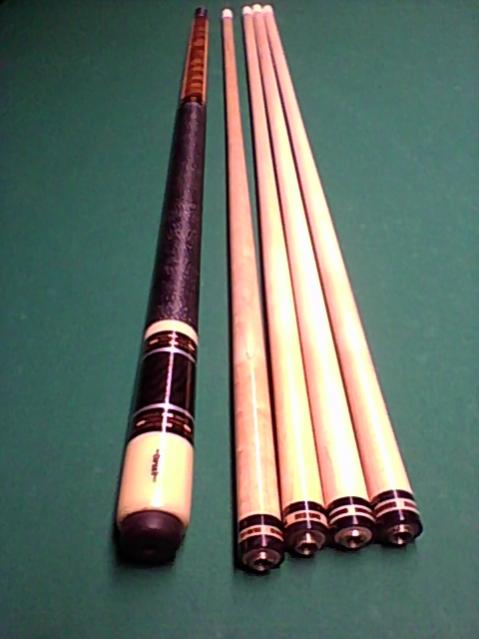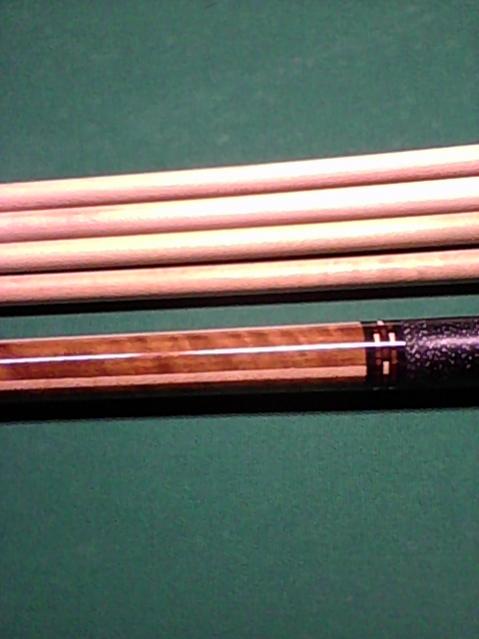 Just trying to get some feedback on how much a cue like this might fetch in today's market.It's an old Hank Corsair cue in very good condition.Cue was refinished and never played with since except to hit a few balls when back from the shop. Cue is very straight. Both shafts and butt. Butt appears to be made of some exotic hardwoods.Also has some very nice inlay work.I'm not sure but I think the metal ring work and joint are made of aluminum. It also comes with butt and shaft joint protectors and they definitely appear to be aluminum. Cue comes with four matching shafts.The butt feels thin in hand around the wrap and weight is approximately 19oz.I would estimate all the shafts to be between 12.25 and 12.5mm at the ferrule.