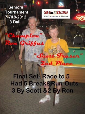 I played in Shooters-Wichita Seniors Tournament last weekend. It was a 32 player 8 ball tournament, race to 5 both sides. I lost my second match, and was relegated to quarter city on the 1 loss side. I managed to win my next 7 matches to get to the final. 4 of the 7 matches were against very good players.