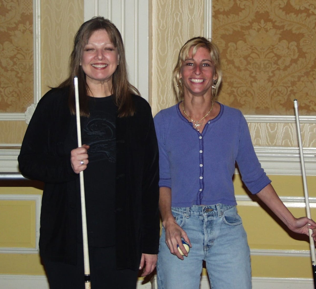 Me and Diane Hoppe pretending to be pool players. If I look like I'm stoned, I probably was.
