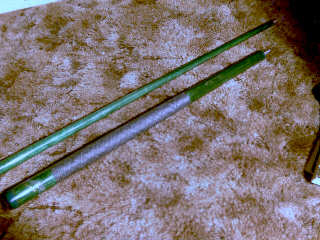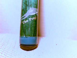 Here is an older Frog Jump Cue from Robin Dodson, when she was still Robin Bell. Brass ferrule and brass joint. Asking $30 shipped.