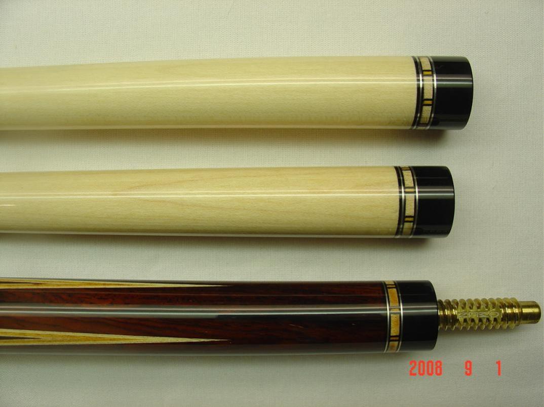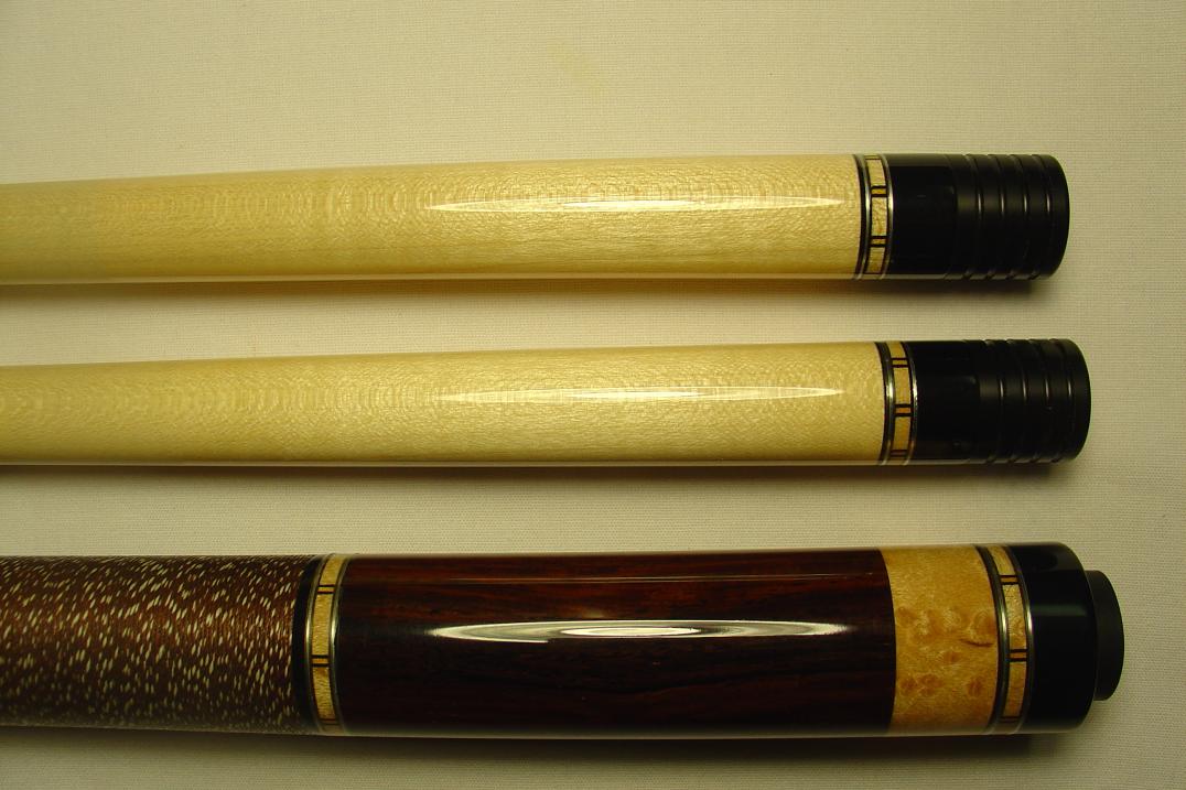 With either shaft attached to butt there is a taper roll of 1 business card thickness, tips do not leave the table