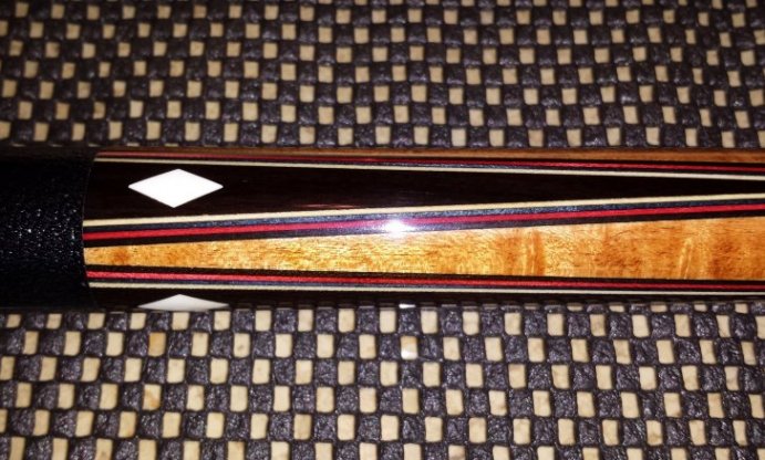 I was fortunate to get this 1990 Bill Stroud Josswest cue from its original owner, a friend of mine and fellow pool player here in the NY tri-state area. Truly one of my best hitting cues which is why I have held onto it so long! The cosmetics on it are a true work of art! This cue has 20 ivory inlays on the butt along with another 4 within the points. Comes with JW1990 logo of that era and has steel joint with 5/16x14 apec pin (which is a hairline thicker than the standard 5/16x14 pin or so I've been told). I have 2 original Bill Stroud shafts. Shaft 2 has never been played with or even chalked. Each shaft has an original ivory ferrule. The forearm is of dark curly maple and has 4 ebony points with 4 veneers of natural, black, red and black. It has a nicely done black leather wrap and was refinished by Bill Stroud in 2010 at which point I retired it and have taken it out to play with a handful of times. The butt has 4 windows with the same veneers. This one has been a keeper for my collection but I'm looking to deal it off at this point. I can't keep all of the cues I come across! Cue and shafts roll dead straight together and apart.