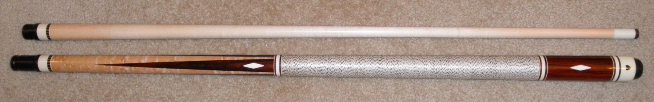 NICE cue. Nicer guy. Still haven't figured out how you keep your cocobolo points from bleeding onto the birdseye? I love coco but can't control it Great job as usual.