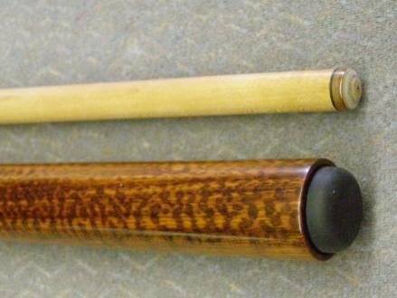 well after about 7 years, couple thousand dollars, and a very large pile of snakewood sawdust, i finally finished a one piece butt with NO HAIRLINE CRACKS. both ends were doweled with laminated maple and most of the handle area was left solid.
