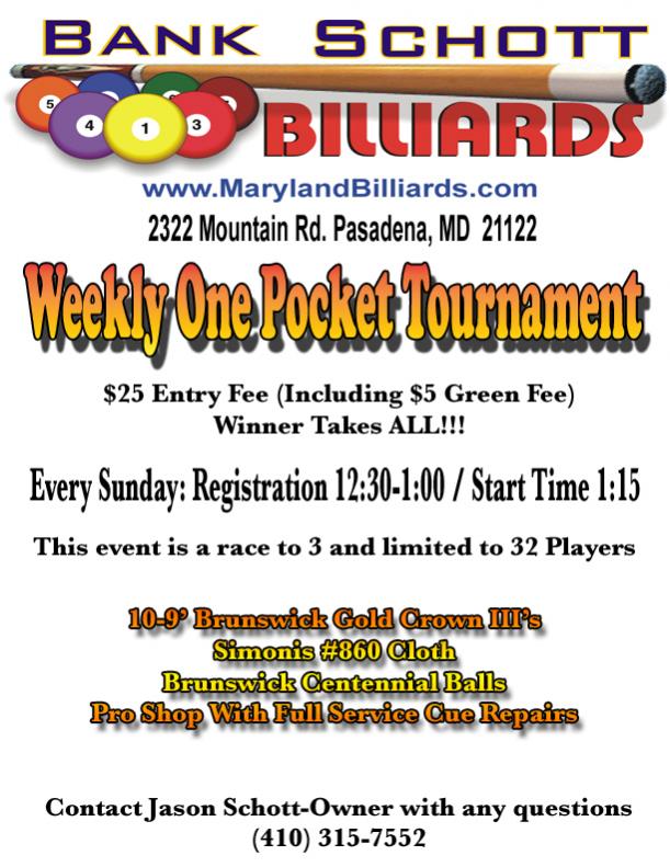 M mdbilliards Registered Aug 14, 2009 #1 Don't miss out on this weekly event!!! I also offer weekly 8, 9 & 10 ball tournaments with super racks as well as host (in-house) APA and TAP leagues. In addition, I also offer KENO, Racetrax & Lotto. Last edited: Aug 14, 2009