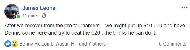 Buffalo very well might be just paying Dennis 10k to try and do it , i am not sure about that.I said it before, it will take a 100k reward for a pro that is not in love with straight pool to try a concerted effort. Otherwise, they will stay in bed10k or 20k won't cut it.