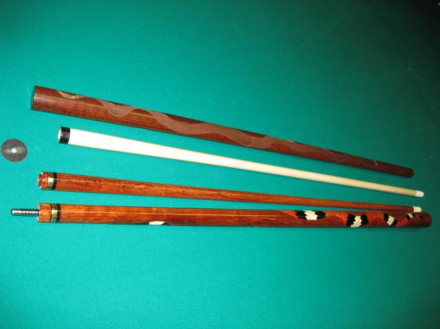 Bubinga 1 year project, 14 karat gold rings and a ton of work. Kansas City cue maker Ron Treager, beaut, have a look and make an offer 913-940-0356