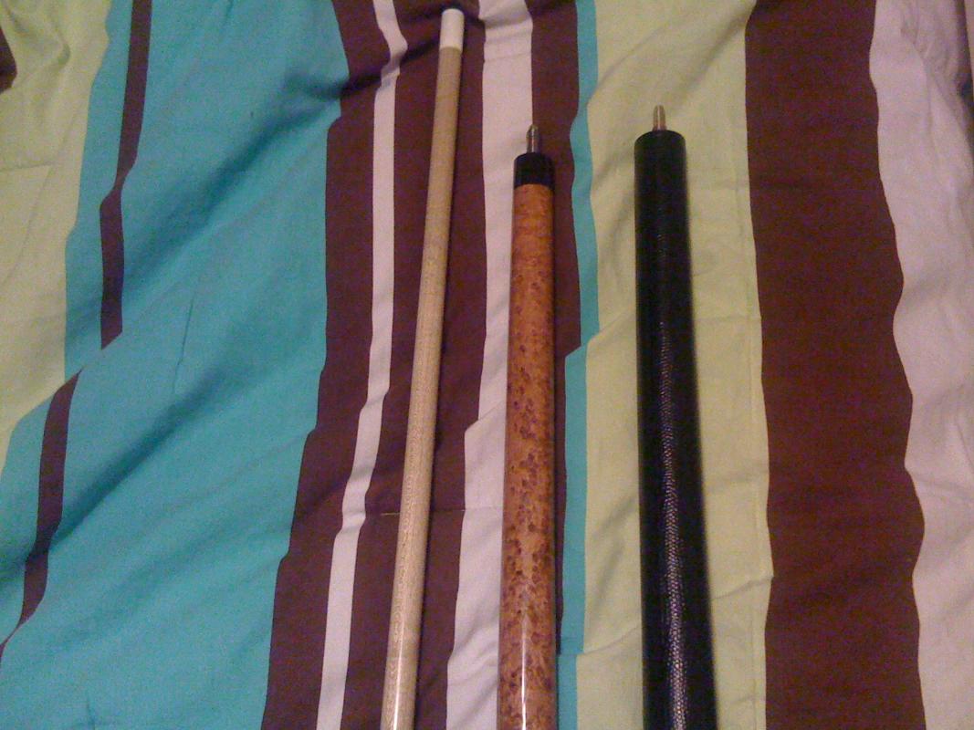 Richard Chudy is for sale @ $1900, for $100 more dollars I will add a stained maple mace J/B with a new leather wrap. Mace has a water buffalo tip, about a year old only, weight is 19oz! Great playing cue as well. Richard Chudy is wrapless, four ebony points, ebony handle comes with two shafts moori medium tips. Ferrules are iverine not ivory, black G10 pin. Cues plays really good. If interested can be reached @ 786-683-2513 or by PM. Thanks,