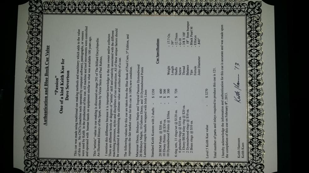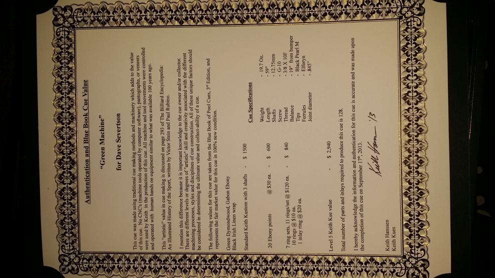 COA will be updated for extra shafts. For more detailed pics check out Keith hanssen cues face book page.