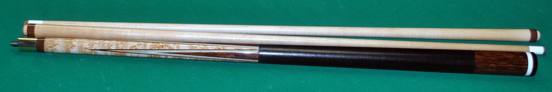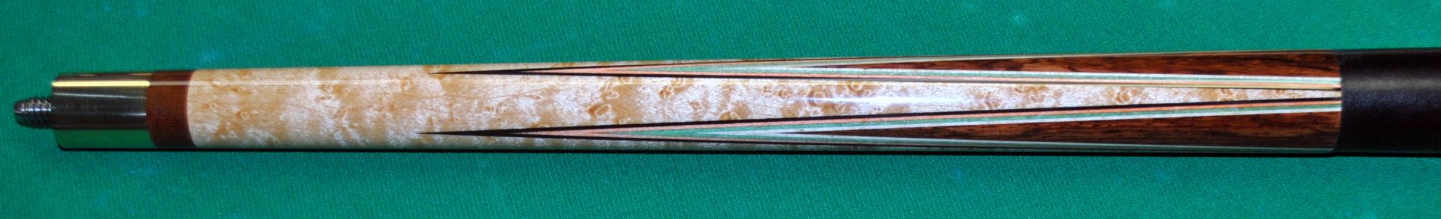 It's an all hand cut wrapless multi exotic wood that boasts a spalted maple handle with cocobolo and olive wood points and the reverse done in the butt,,,,