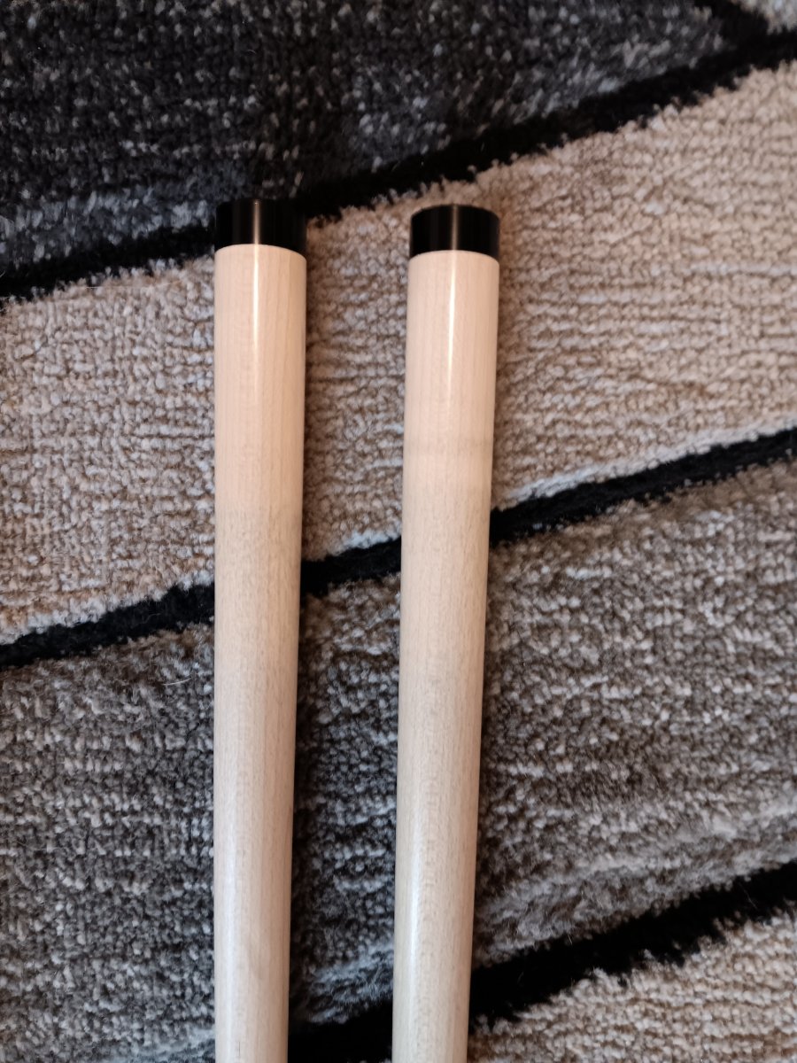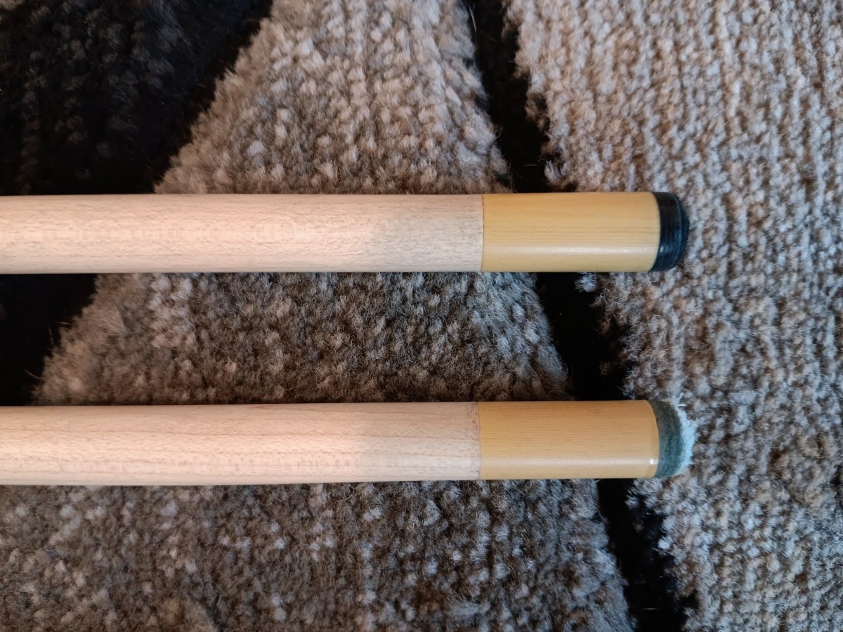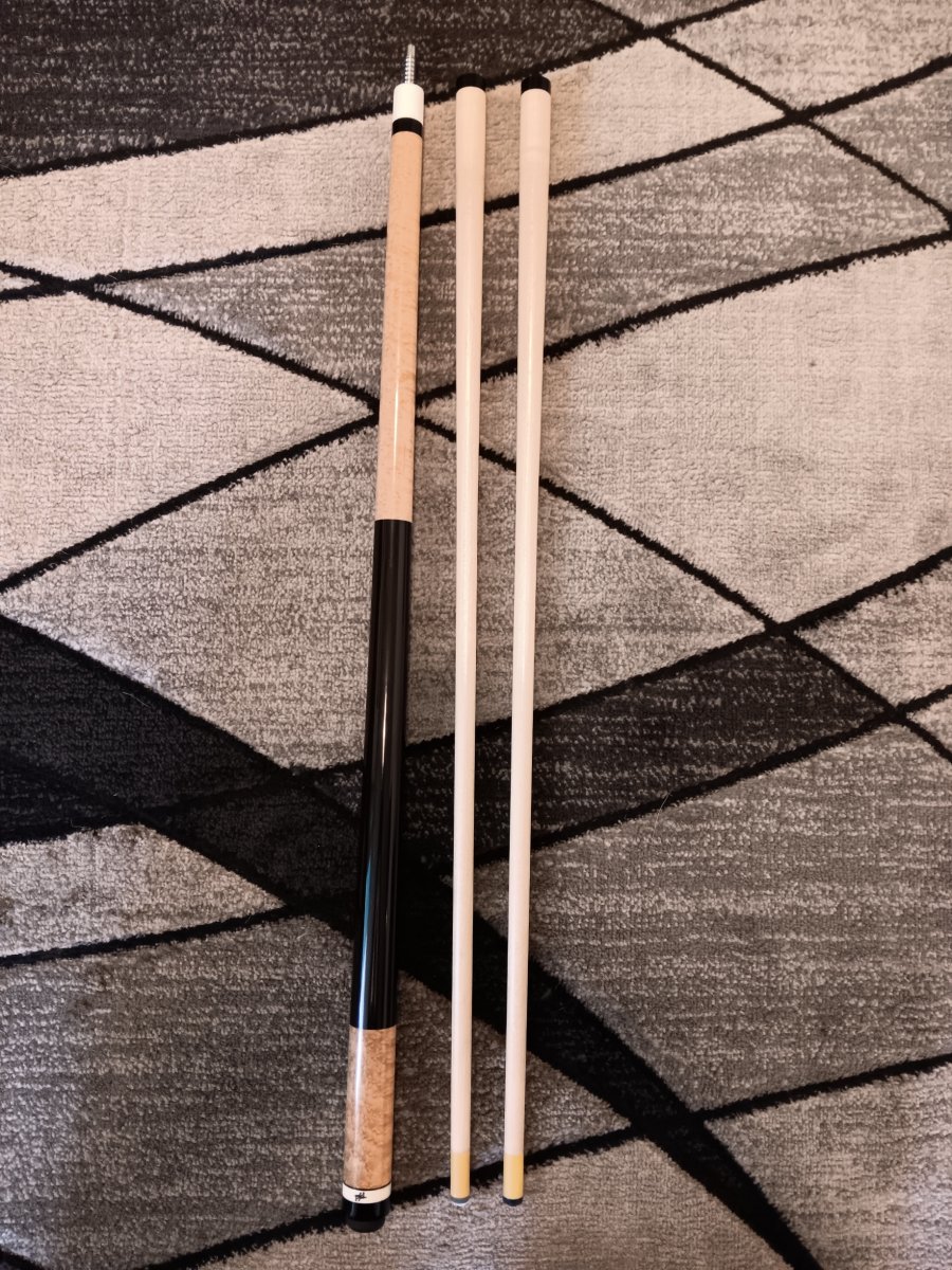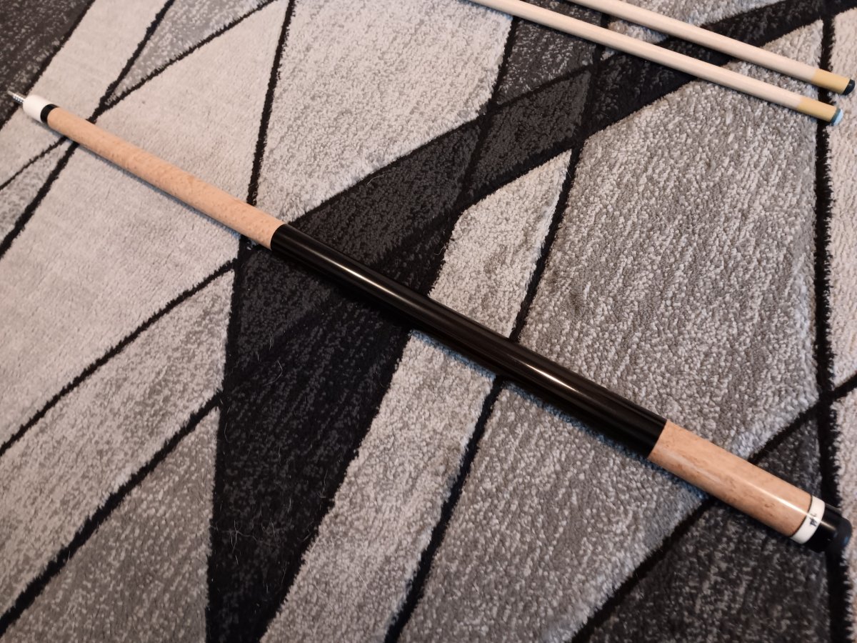 Birdseye maple forearm and butt sleeve with ebony handle. Hoppe ring is made of IV. Cue rolls straight both together and apart. There is a small dent near the bottom of the 12.6 mm shaft. Other than that the cue is in excellent condition. $1200.00 USD including shipping.