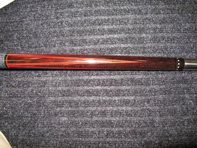 i have a paul mottey that i got in a trade. it is ebony on ebony with red veneers and a irish linnen wrap. 2 shafts that have ivory ferruls. it has alluinum joint protectors and the joint is 5/16 14 flat faced. the cue is refinished and the shafts are new one shaft has just been test hit. i was told the finish and shafts were done by dan trogden. i know i forgot some stuff so any questions just email me here or at ridendirty@hotmail.com