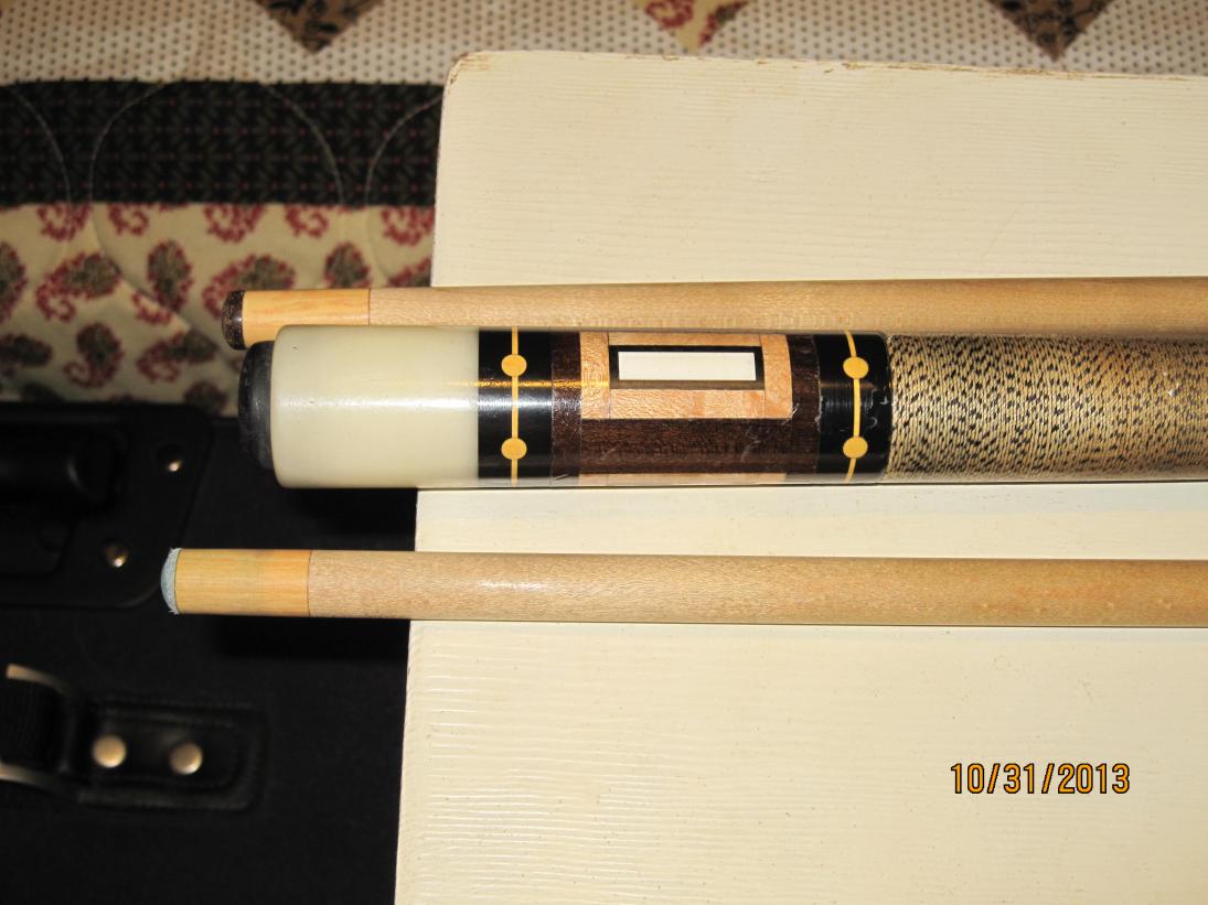 I hope I found a good cue there is no cue makers mark of any kind I pulled the bumper held in with an allen screw and it has a weight bolt like i have in my schon what caught my eye was what I think are micarta ferrules tell me what you think please any help would be good Thanks in advance
