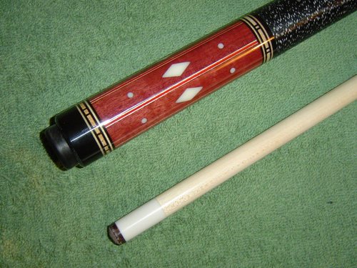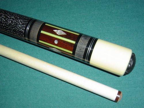I will complete the package with the Gray stained Helmstetter style 4 point inlay cue.