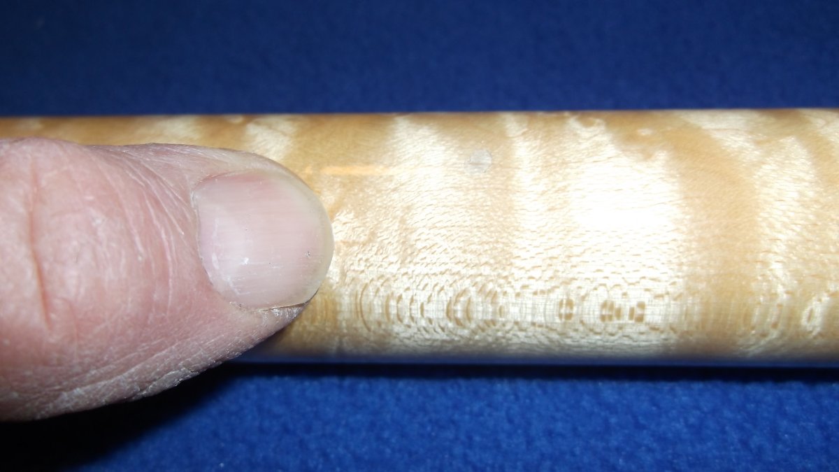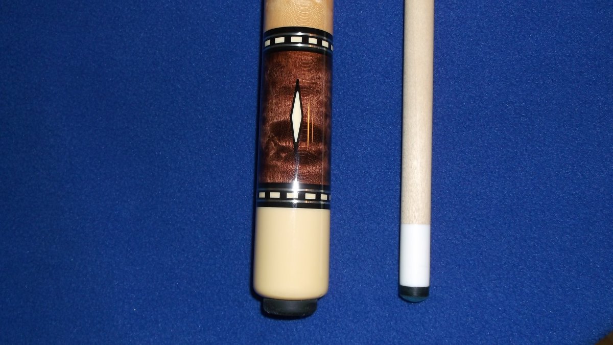 AND A FEW SMALL DINGS-IN THE WOOD HANDLE-ALSO A TINY NICK IN THE EDGE OF THE WHITE BUTT CAP