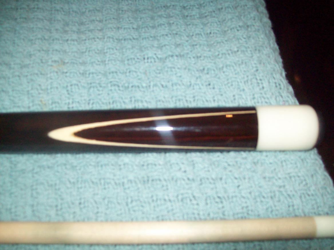 this is around 190z 3/8 pin wood to wood joint it's straight together or apart it's got a mazing piece of ebony with that white ring in it. with a white derlin butt plate rick onley made a few of them i was told .it hit's great u won't find a sneeky like this on his web site it sold at the time 4 $600.iam asking $ 400.