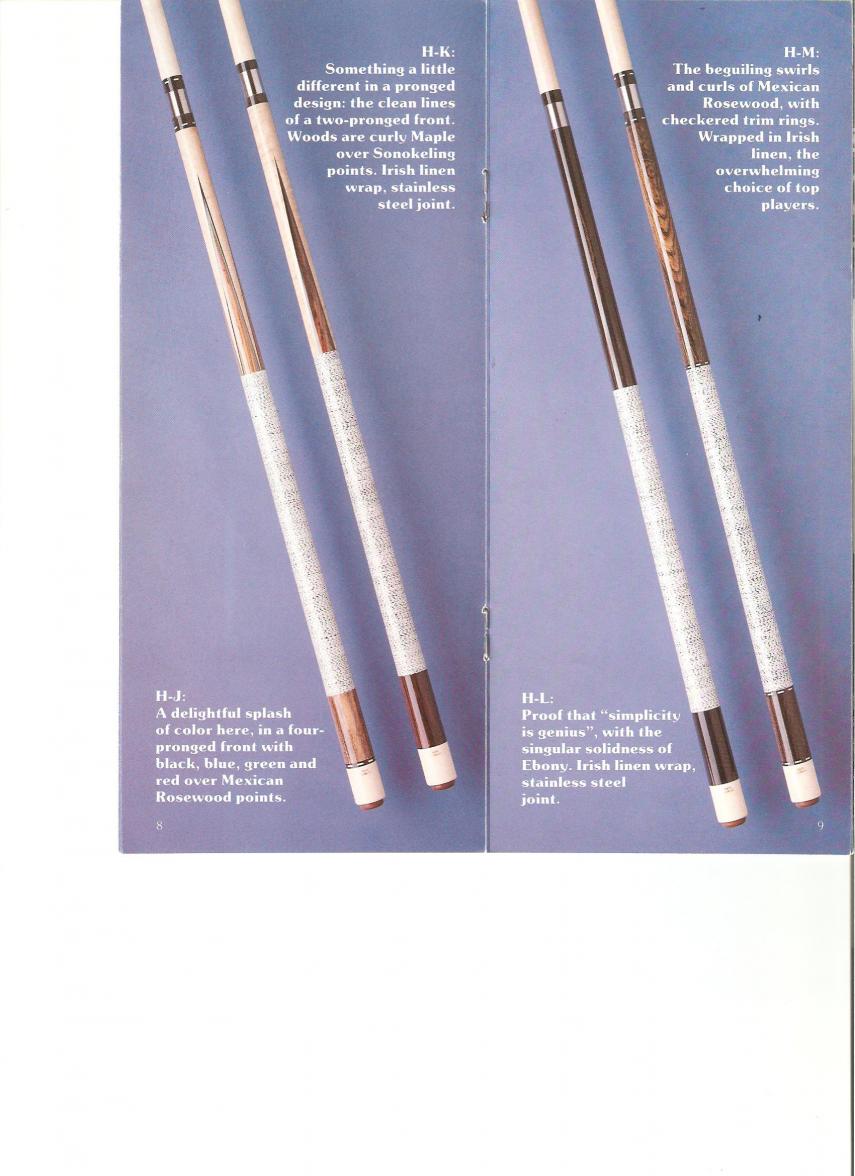 '96-97 Earl Strickland - my very first cue! The entire shaft, forearm and butt was all black with a carbon-fiber design...looked great in the case, but played terribly due to the graphic laminate that started peeling and made it impossible to use in humid conditions. My brother found it in original case when he moved, and thankfully Cuetec still uses the same joint pins..so I bought a new Cuetec model w/ R360 and then swapped the shaft over. Now looks and plays great, and has become my cousin's favorite stick to use.
