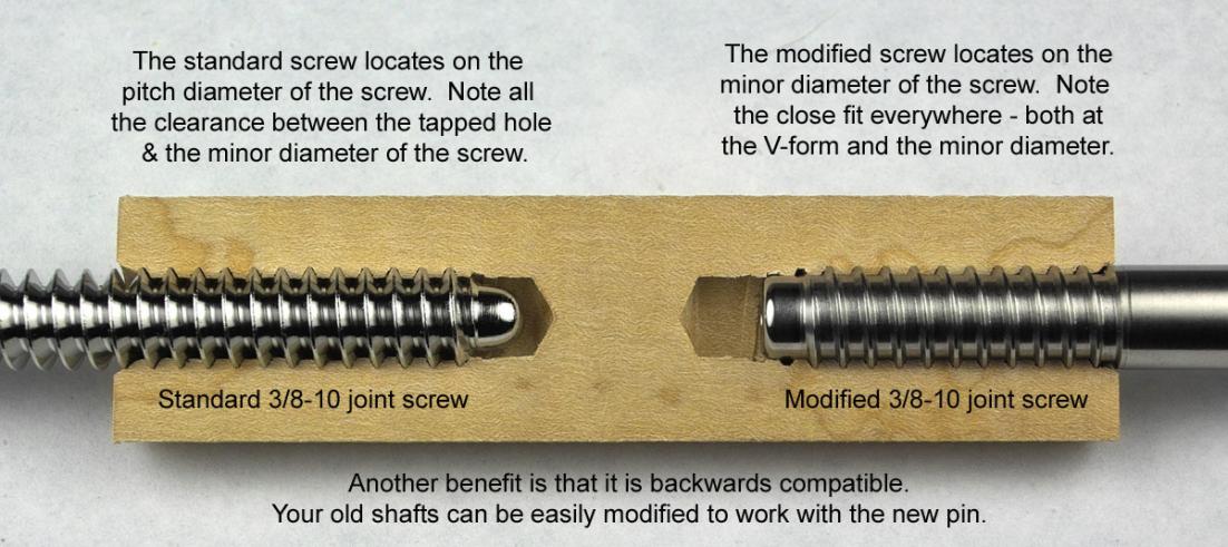 Normal 3/8-10 pins have less thread surface contact than Radial or Ball screw pins. This is because the Radial has rounded threads with tighter fit. Now the Southwest or Martin style of 3/8-10 pins have a flat minor diameter that can have a lot of thread surface contact also. This has become my favorite style pin in the 3/8 size. They are about three times the money of the standard 3/8-10 pins, but for precise shaft alignment or ease of installing in the butt centered and straight, they are hard to beat.