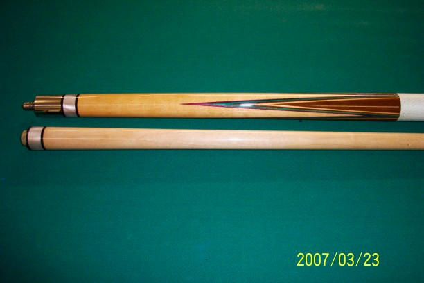 Over all the cue is in pretty good condition considering it's age, and the butt and shaft are still perfectly straight.