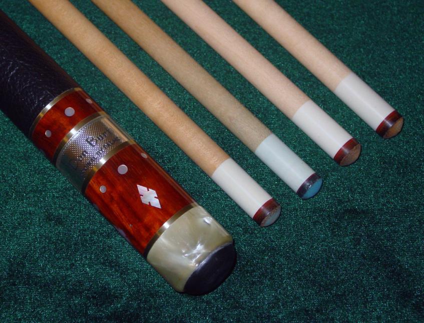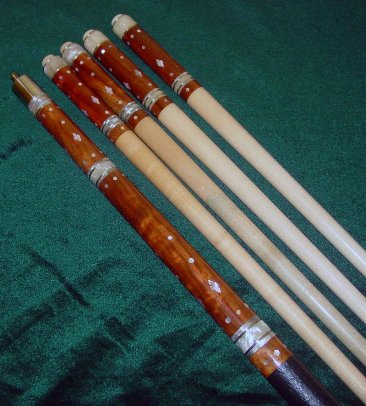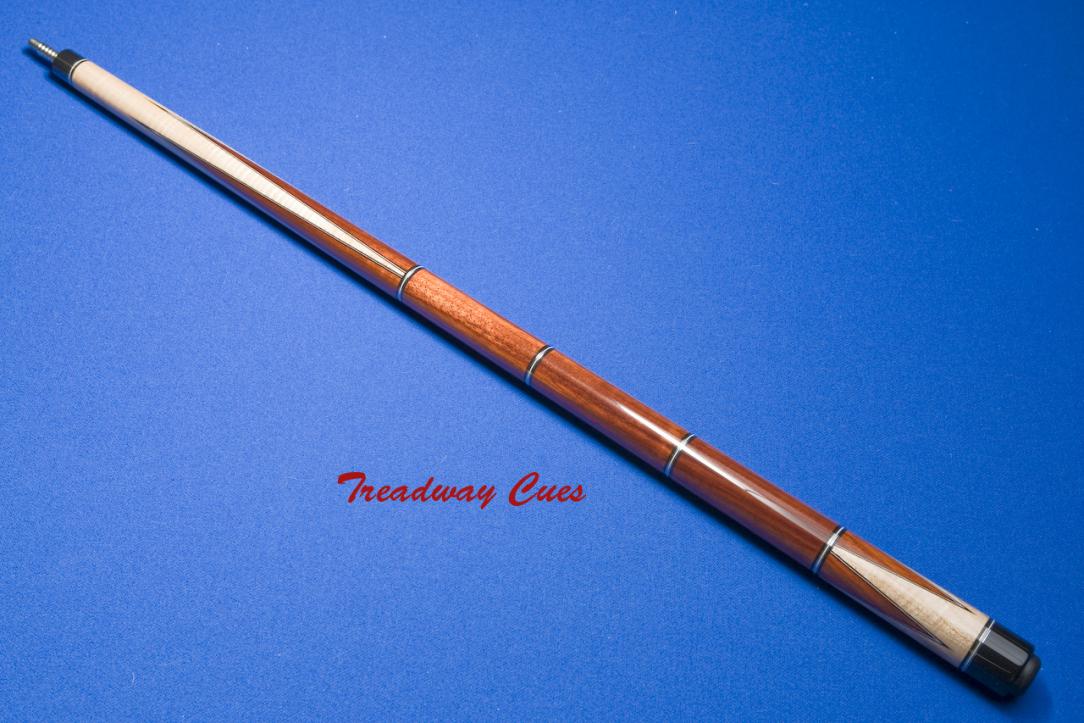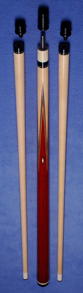 The mission, if I chose to accept, was/is to get rid of 542 pieces of 1.5X1.5X30" padauk. The challenger made it easy. He took the first 100. I have since sold 100 more. Now sales have slowed. So I must make cues from them and sell them one at a time. Or convince people to get their cuemaker to make them a cue with this wonderful wood. So please post pictures of padauk cues. Here are a couple I just finished and they are for sale.