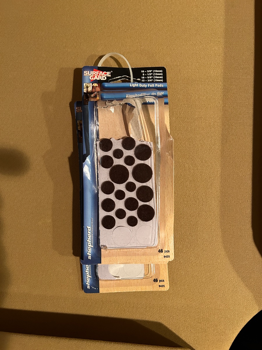 The felt pads I'm using have been on for years... I simply give them an occasional visual. I'm sure they are available in black.