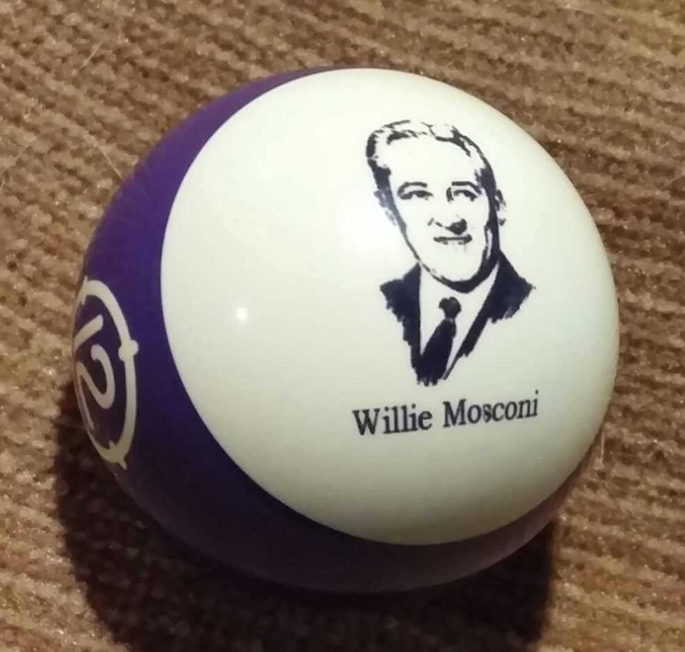 I found the ball attached to a memorial plaque featuring Mosconi. There was a small round ball holder attached to the plaque with the ball inside. Perhaps there was a set of individual plaques featuring various pros at the time? But, I have not seen others like it, so I suppose I can't be sure.