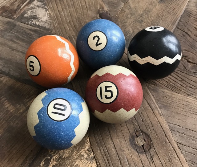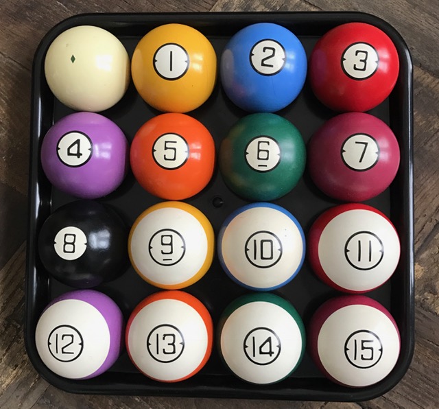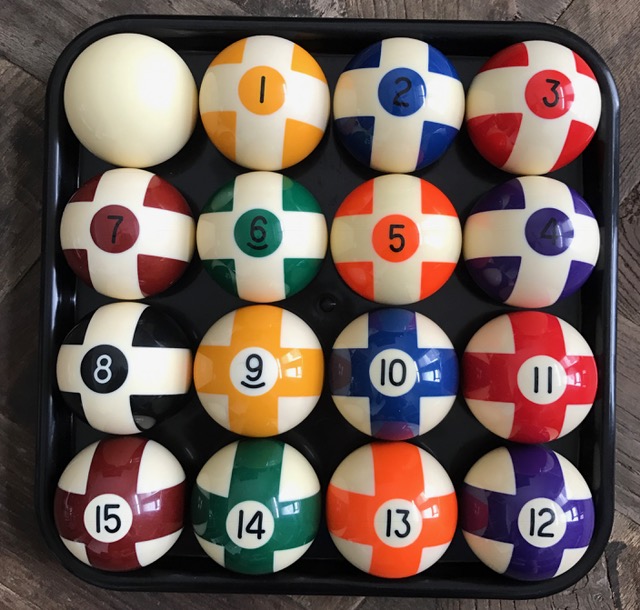 I'm thinking I'll pair up 7 balls from each set and play "Army" like Dad used to call it when he got together with his friends in the smoky pool hall that served together --- while I watched and learned the game.