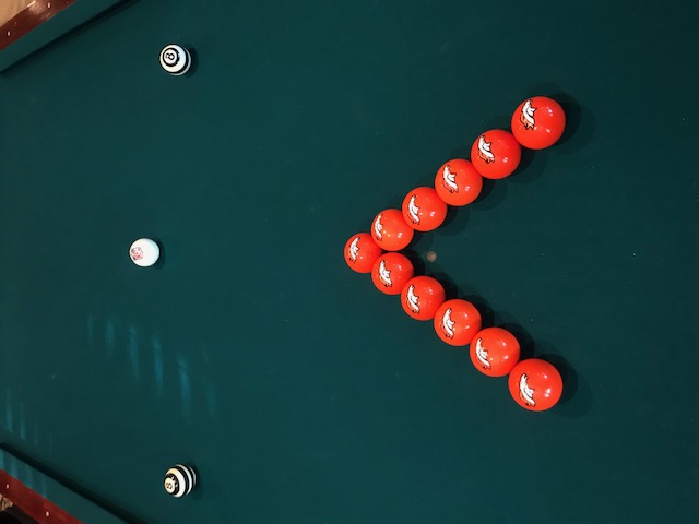 7 referees. Yeah, I thought about that. And it does make for a very unique and challenging game when using 7 of each men from rivalry teams, putting 21 total balls on the field which is nearly ideal. The two referee ball option seemed to work perfectly during the 120+ test games with just enough distraction and challenge when used with the perfect 11-man teams. 24 total balls on the field (plus the cue ball of course) BUT....4 referees may be a interesting idea. I’ll lay that out and start testing Sunday.